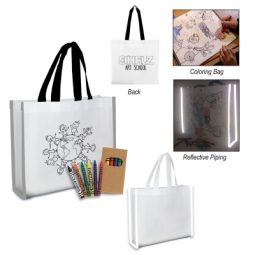 #CM 3685 REFLECTIVE COLORING TOTE BAG WITH CRAYONS