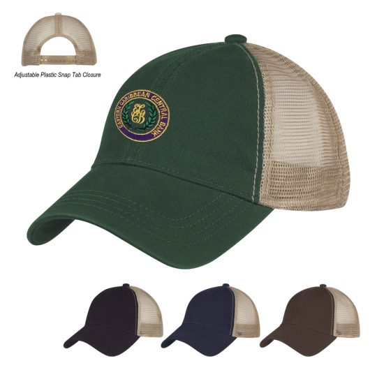 - Mesh Back With Adjustable Plastic Snap Tab Closure