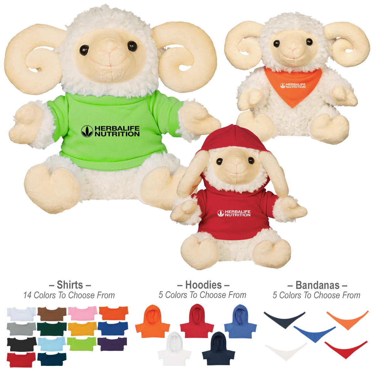 Ram: White. Shirt: White, Royal Blue, Black, Forest Green, Pink, Athletic Gold, Light Blue, Orange, Heather Gray, Purple, Red, Lime Green, Navy or Brown.