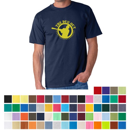 Antique Cherry Red, Antique Irish Green, Antique Royal, Ash, Azalea, Black, Blue Dusk, Cardinal, Carolina Blue, Charcoal, Cherry Red, Chestnut, Cornsilk, Daisy, Dark Chocolate, Dark Heather, Forest Green, Galapagos Blue, Gold, Heather Cardinal, Heather Indigo, Heather Navy, Heather Sapphire, Heliconia, Honey, Ice Grey, Indigo Blue, Iris, Irish Green, Jade Dome, Kelly Green, Kiwi, Light Blue, Light Pink, Lime, Maroon, Metro Blue, Military Green, Mint Green, Natural, Navy, Olive, Orange, Orchid, PFD White, Pistachio, Prairie Dust, Purple, Red, Royal, Rusty Bronze, S. Orange, Safety Green, Safety Pink, Sand, Sapphire, Sky, Sport Grey, Stone Blue, Tan, Tangerine, Texas Orange, Vegas Gold and White.