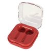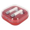 Charcoal with Black, with Black Earbuds. Clear with Blue, Lime Green, Red or White, all with White Earbuds. Optional Black or White Earbuds Available, Must Specify on PO.