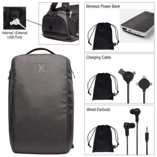 - Bundle Includes #9662 Oxygen 45 – 45L Hybrid Backpack Duffel, #9668 Lithium – 10,000 Mah Qi Wireless Power Bank, #9669 – 5 Ft. 3-In-1 Lithium CC – Charging Cable And #9667 Krypton Wired Earbuds With Pouch