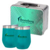 - Set Includes #424 Throwback Tin Lunch Box And Two #5661 – 12 Oz. Vinay Stemless Wine Glasses