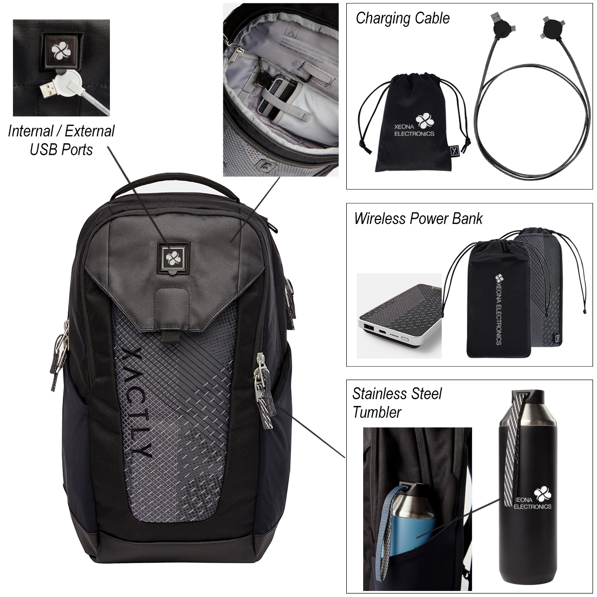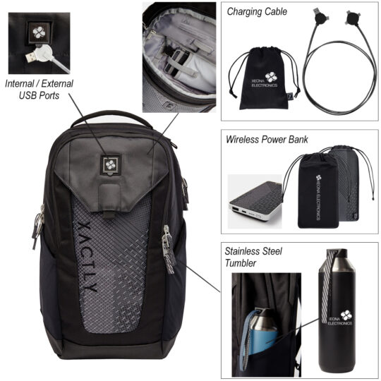 - Kit Includes #9660 Oxygen 25 – 25L Backpack, #9669 – 5 FT. 3-In-1 Lithium CC – Charging Cable, #9668 Lithium – 10,000 mAh QI Wireless Power Bank and #9664 Hydrogen 20 – 20 Oz. Stainless Steel Water Bottle