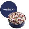 • The Royal Tin features a plentiful amount of gourmet food gifts to satisfy your biggest critics. Comes printed with a 1-color direct imprint on the lid (solid-color tins), or a greeting card (designer tins). You can also add a 4-color process laminated decal to the lid of any of our solid-color tins