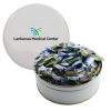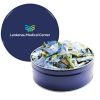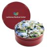 $42.50(v). Price includes one color direct imprint on the lid of the solid colors and a greeting card for the designer tins. Two-four color imprint, add $0.60(v) plus an additional setup. PMS color match for direct imprint $60(v). Add a laminated decal $0.75(v)
