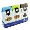 - Custom printed tray holds three gable boxes of Noble Knight gourmet goodies