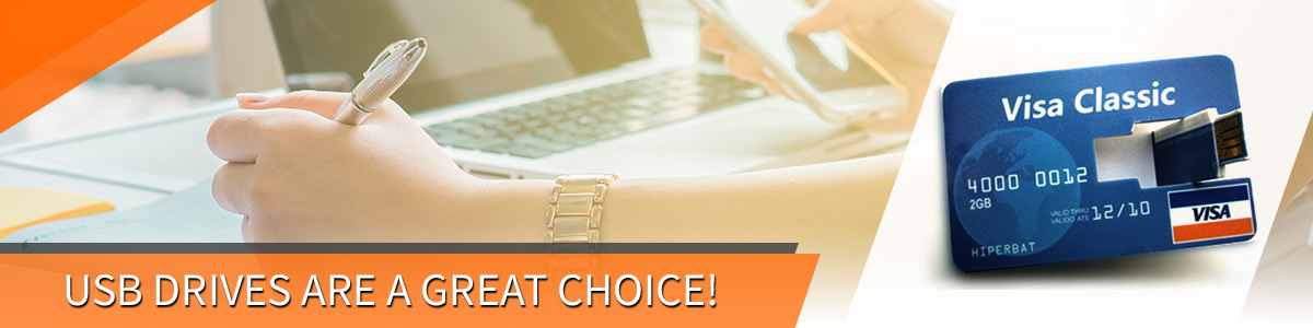 If your company attends multiple trade shows or industry events throughout the year, then you’re likely looking for gifts, or “swag,” that you can hand out to attendees. USB flash drives can be a superb promotional choice, since they’re attractive, functional, and they’re not another large item that people have to tote around for the rest of the show. With your brand printed on each drive, people will remember the experience they had at your trade show booth. You can load the drives with information, or simply give them to people to use as they see fit.